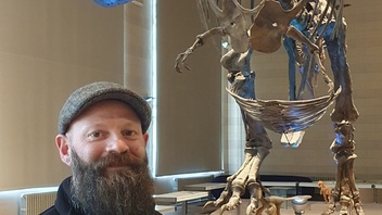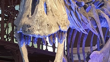 Erstmal super T-Rex-Skelett im Hintergrund. Das Bild gefällt mir sehr!