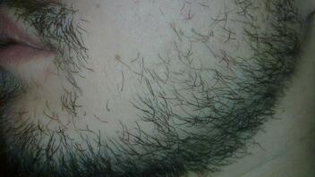 Kurz noch zur Vorgeschichte: glatt rasiert wurde seit ca. 3 Wochen nicht mehr, aber ich habe regelmäßg den Bart mit einem Trimmer gekürzt. Damit die Haare wenigstens ungefähr die gleiche Länge haben, bzw. einzelene sehr lange Haare nicht zu sehr auffallen. Zur Zeit aber habe ich ein ganz schönes Tief: ich habe sehr dickes Barthaar welches zur Zeit in alle möglichen Richtungen wächst. Dazu kommen größere Lücken zwischen den einzelnen, dicken Barthaare welche sich auffüllen mit sehr viel dünneren Haaren. Kurz: sieht einfach schrecklich ungepflegt aus