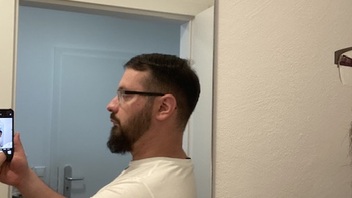 Ich stand gestern vor dem Siegel und mich hat es gestört unter halb Kiefer rechts zu oben weil da nichts wächst und links zu weit unten weil da es dichter ist. Da schnappte ich mit den Rasiermesser und setzte unter dem Kiefer an und rasierte den Kiefer entlang so das es beide Seite gleich aussieht. Ich habe mit meiner Frau Ihre Dyson gekämmt und sieht aktuell so aus….